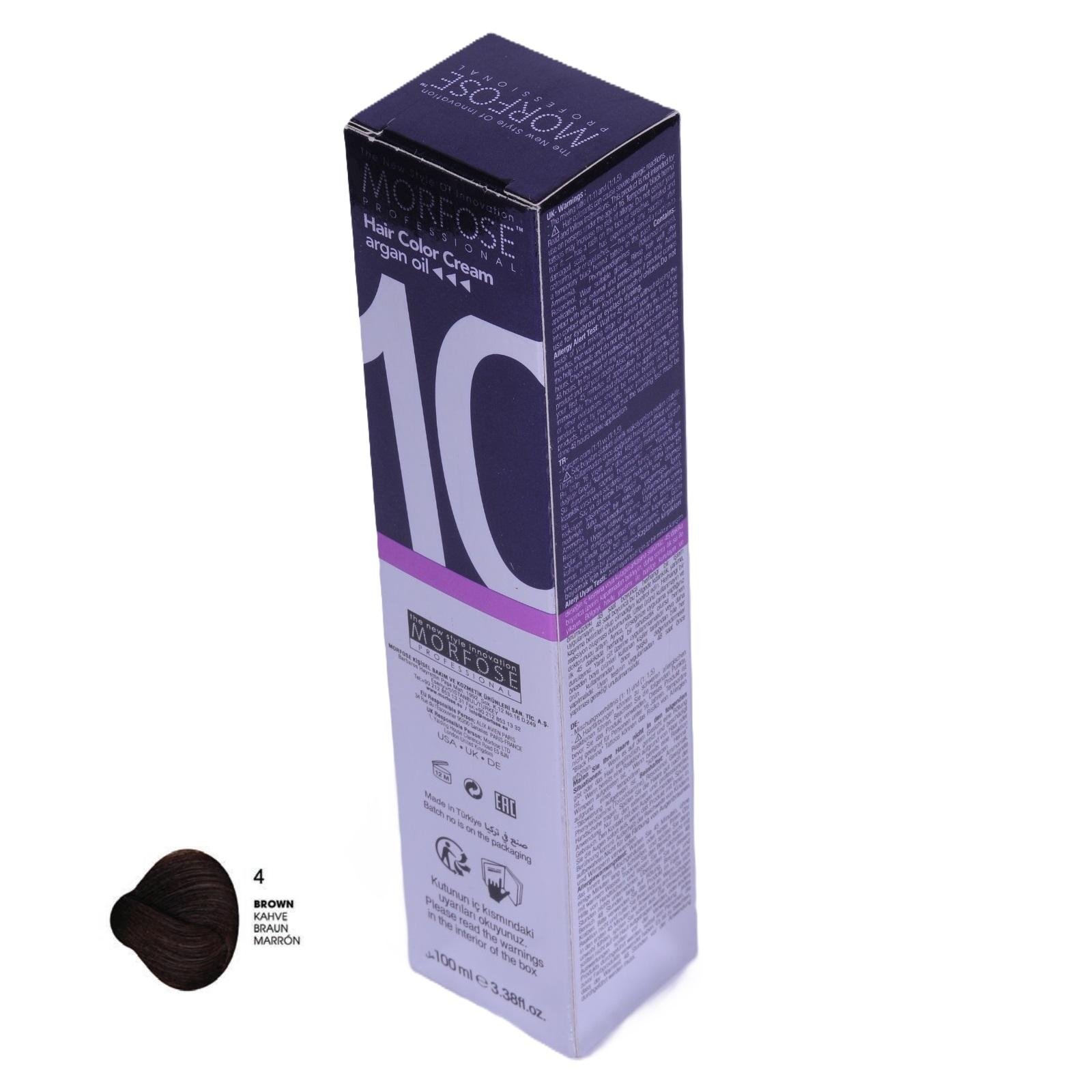 MORFOSE 10 Hair Color Cream with Argan Oil 4 - Brown 100ml
